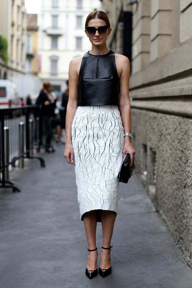 Another way to pull off the crop top is pairing it back with a more conservative skirt. A pencil skirt is sophisticated, sleek and works perfectly with a crop. I love this double lace look – elegant but still edgy.