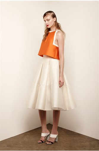 Wearing a boxy top might feel a little less daunting than a skin tight crop. Its a lot more flattering and you don’t have to worry about holding your tummy in all day. I love this colour blocked crop look from Manning Cartell.